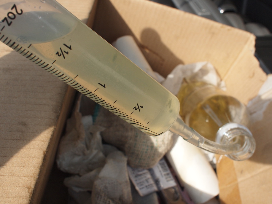 - 注射器で抜き取っては新しいフルードを入れるのを繰り返しました。