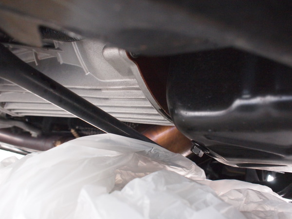 ドレンの位置はミッションの直ぐ手前にあります。この位置です。