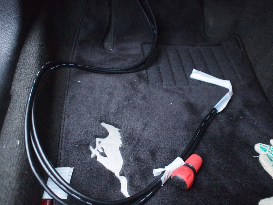 マスタングのドアパネルから車内にスピーカーケーブルを引き込む方法を紹介します。今回はカナレの4S6を3本引き込みました。