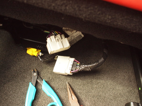 - シートベルトセンサを接続するカプラです。上述の様にこの位置で切断します。