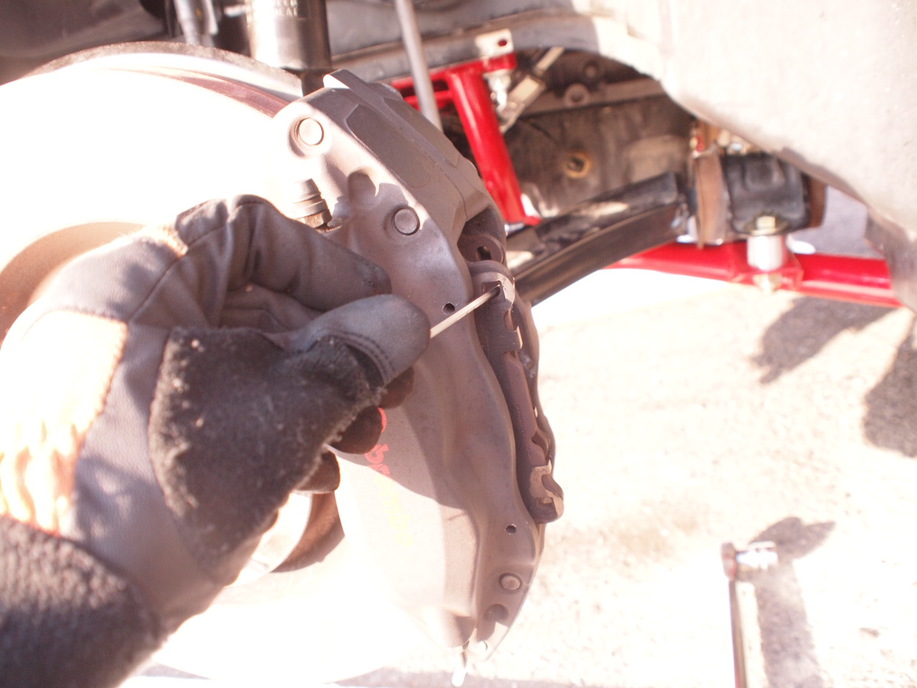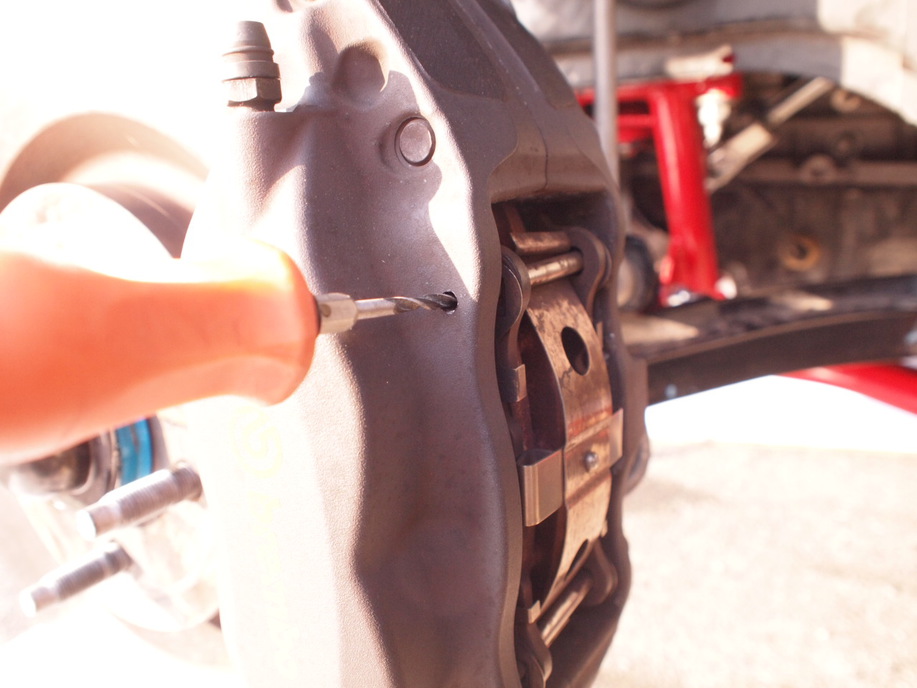 ブレンボのパッド交換は実に簡単です!1.割りピンをキリみたいなので外す。トンカチで叩くだけです。