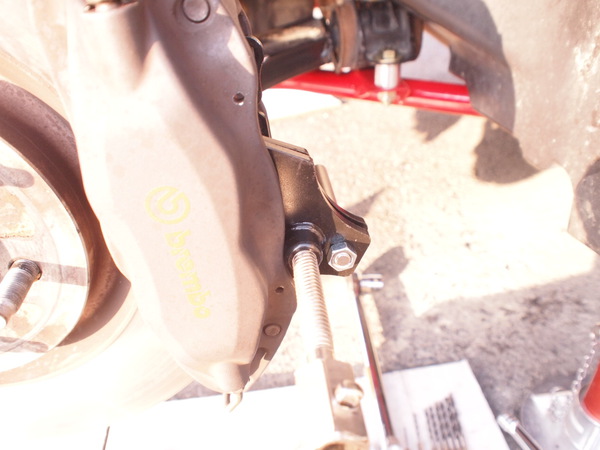 3.ピストンを戻す。アストロプロダクツに売っている4ポット対応のワイドキャリパー戻しを使います。
